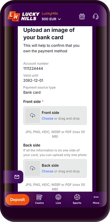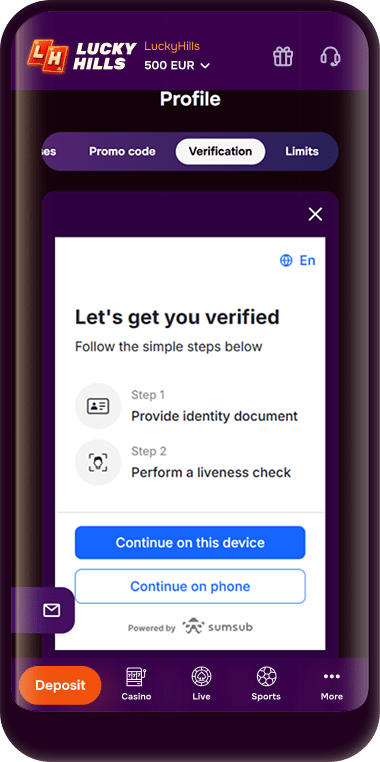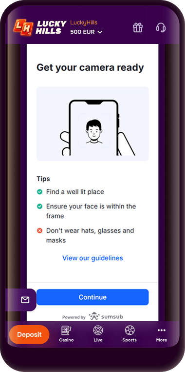 If the system didn’t verify your identity or you have difficulty completing the form, please contact our support team at support@luckyhills.club